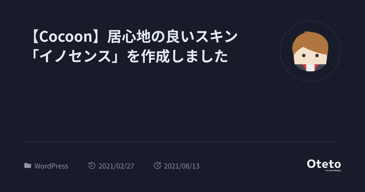 【Cocoon】居心地の良いスキン「イノセンス」を作成しました